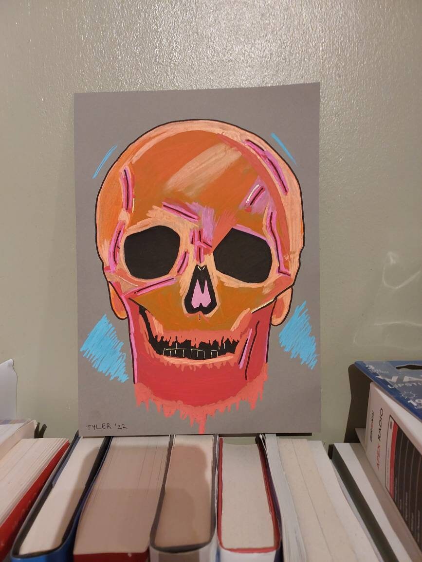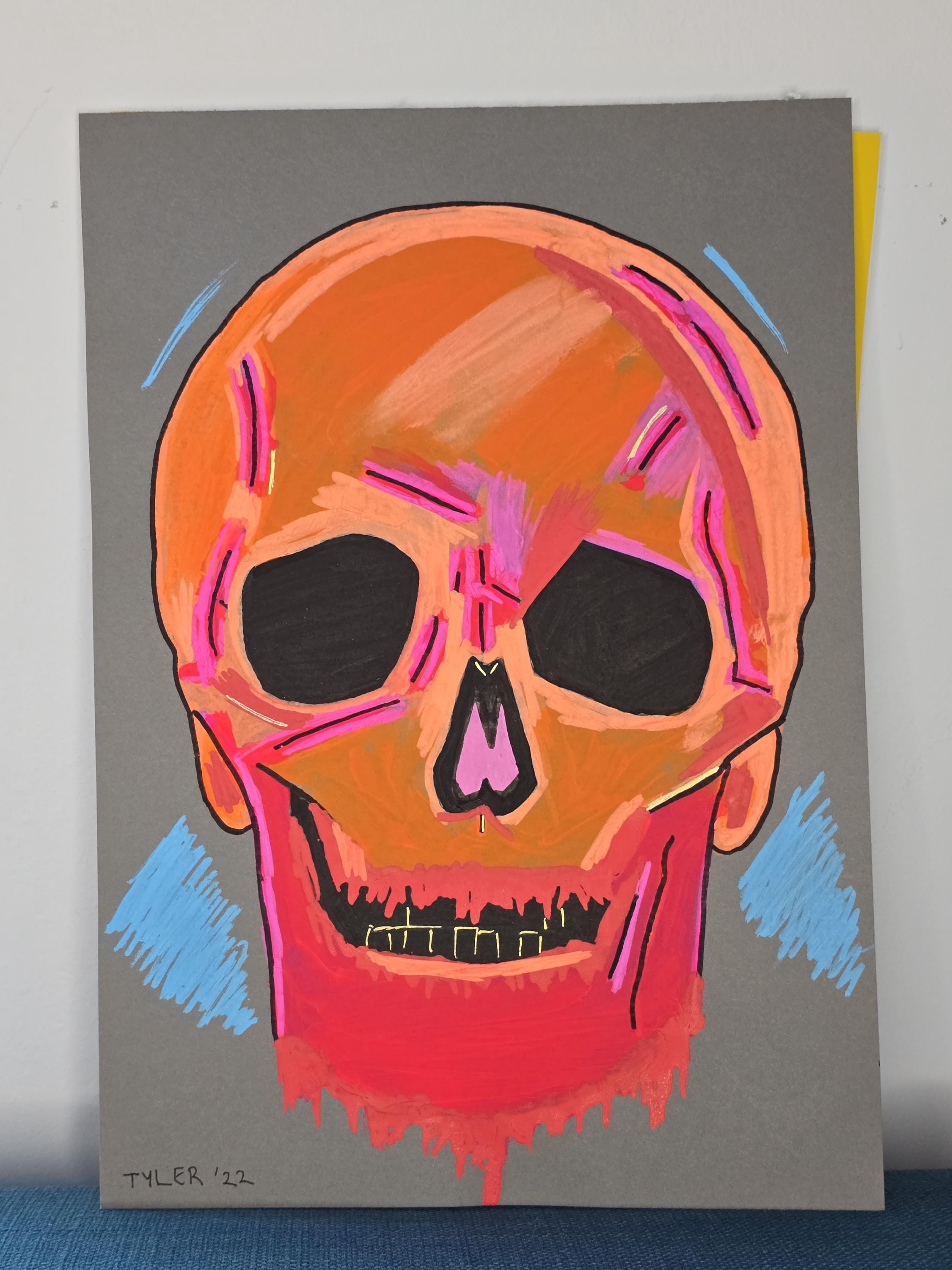 Abstract skull - original abstract acrylic mixed media painting on A4 paper