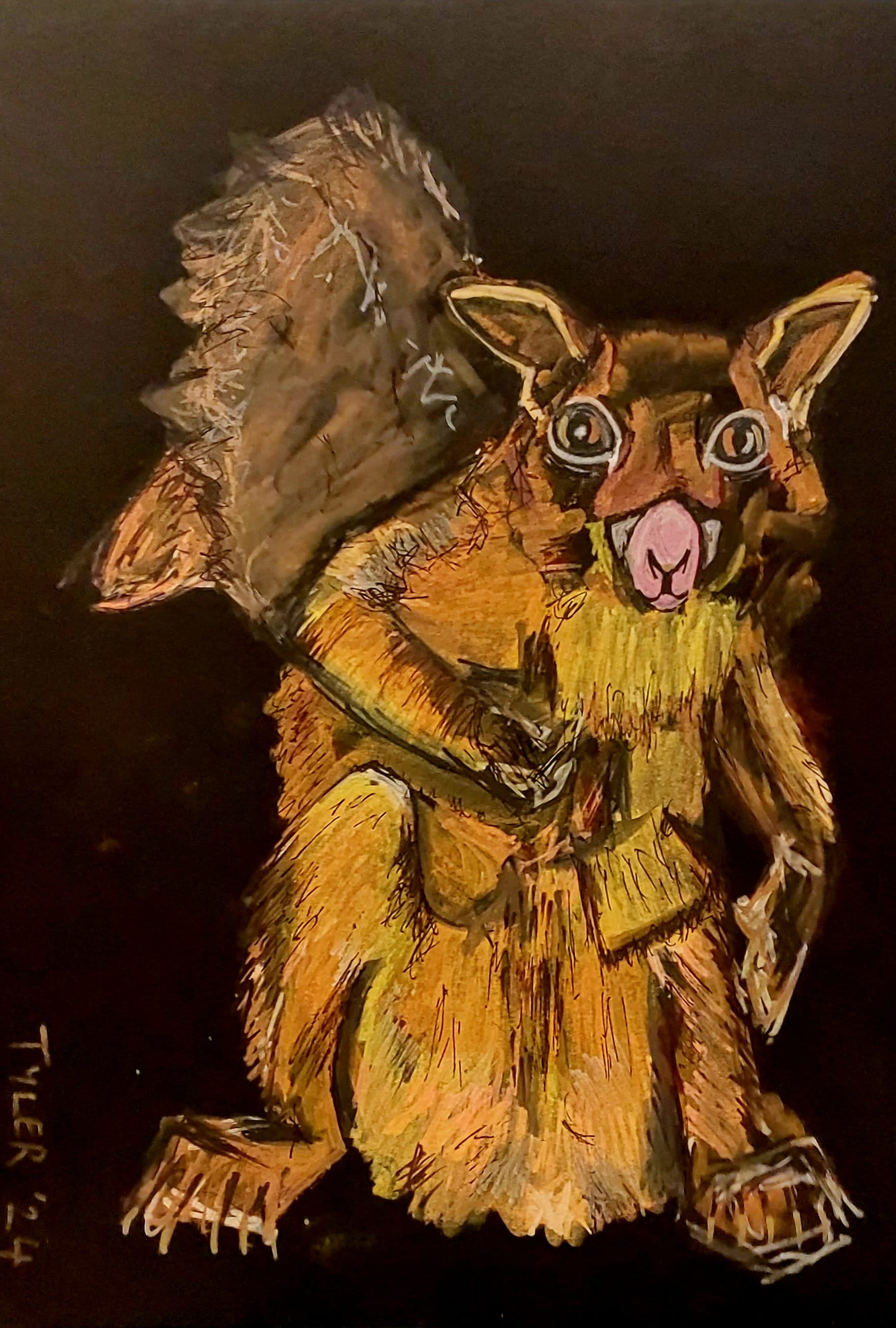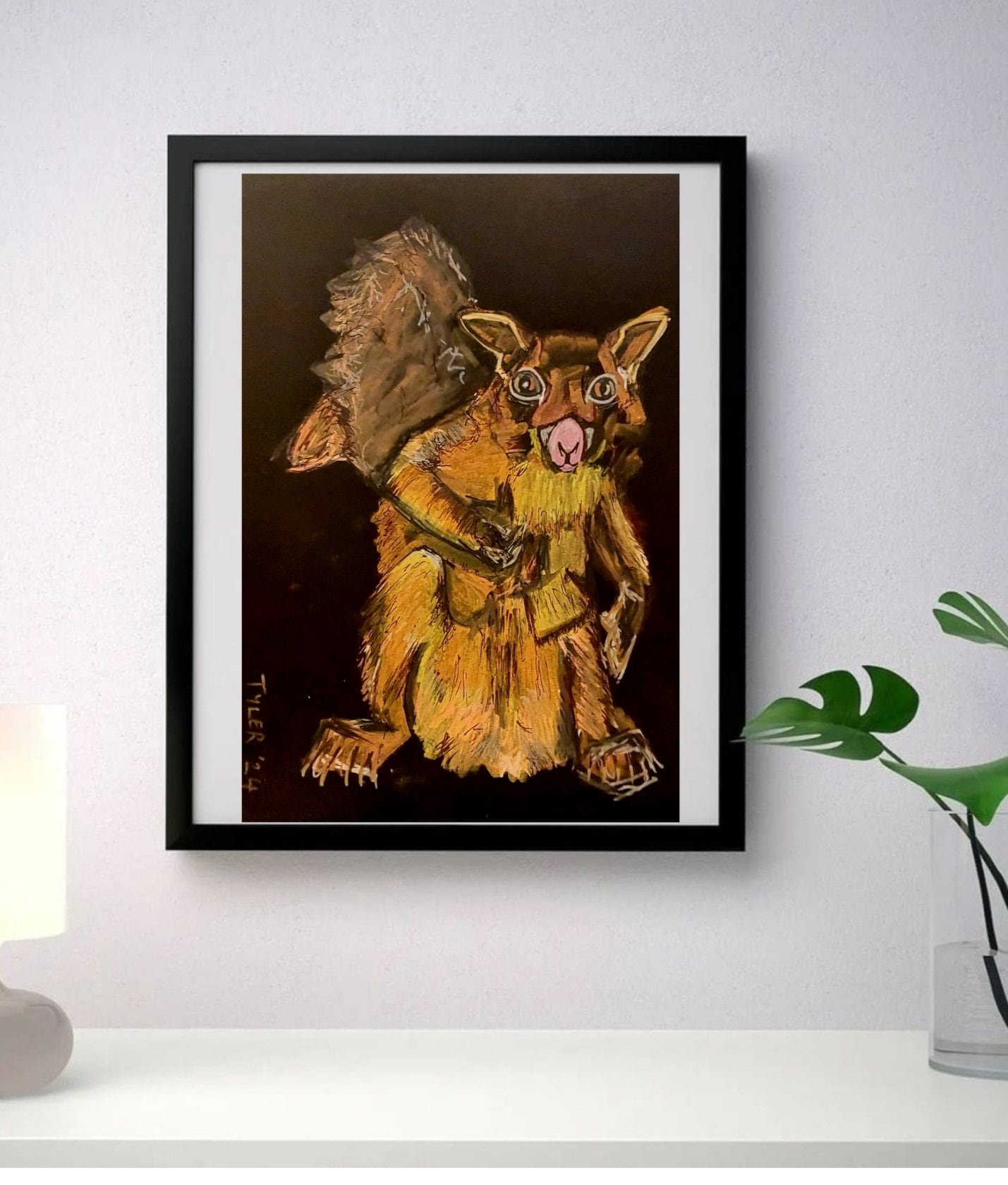 Ninja Squirrel - original abstract acrylic mixed media painting on A4 paper